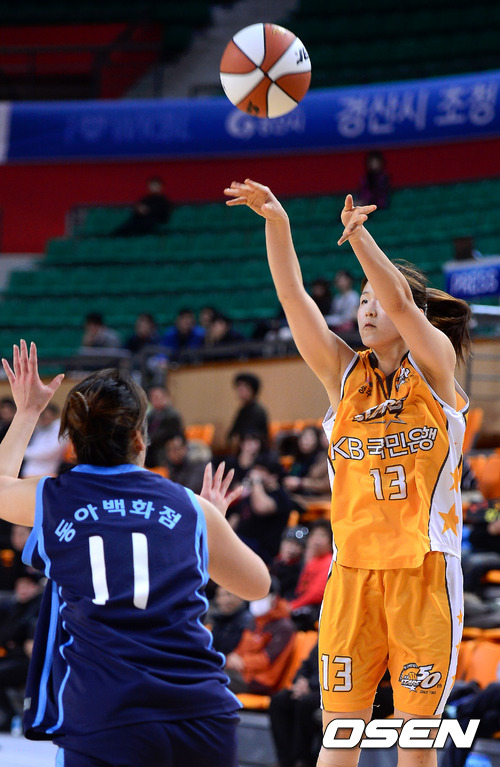 17일 오후 경산실내체육관에서 열린 'KDB금융그룹 2013 여자농구 챌린지컵' 준결승전 KB스타즈와 동아백화점의 경기, 3쿼터 KB 김가은이 점프슛을 시도하고 있다.
