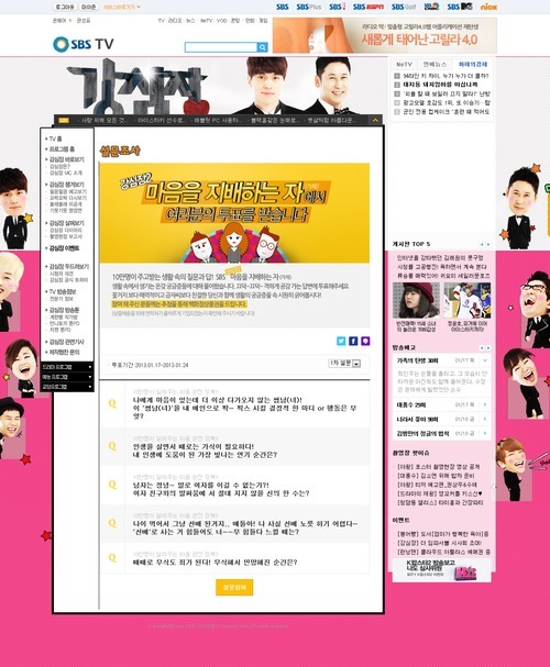 이 설문조사는 17일부터 포털사이트 네이버와 모바일, 그리고 SBS 홈페이지와 소티(SOTY) 모바일을 통해 참여가 가능하다.