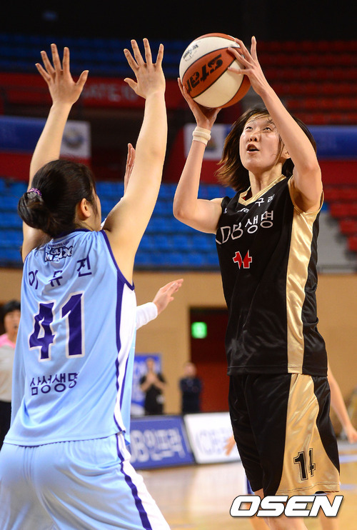 17일 오후 경산실내체육관에서 열린 'KDB금융그룹 2013 여자농구 챌린지컵' 준결승전 삼성생명과 KDB생명의 경기, 2쿼터 KDB 원진아가 점프슛을 시도하고 있다.