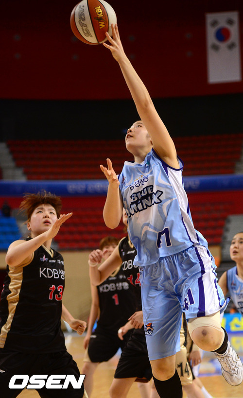 17일 오후 경산실내체육관에서 열린 'KDB금융그룹 2013 여자농구 챌린지컵' 준결승전 삼성생명과 KDB생명의 경기, 3쿼터 삼성생명 이유진이 수비를 뚫고 레이업슛을 시도하고 있다.