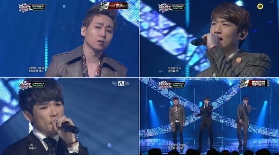 팬텀은 17일 오후 방송된 엠넷 '엠카운트다운'을 통해 컴백 무대를 갖고 '조용필처럼'을 선보였다.이들은 수트로 격식을 차린 무대 의상을 소화하며 진지한 분위기 속에서 노래를 이어갔다. 특히 잔잔하게 이어지는 멜로디 속에서 수려한 래핑과 보컬로 진한 감성을 폭발시키며 가창력을 과시했다.