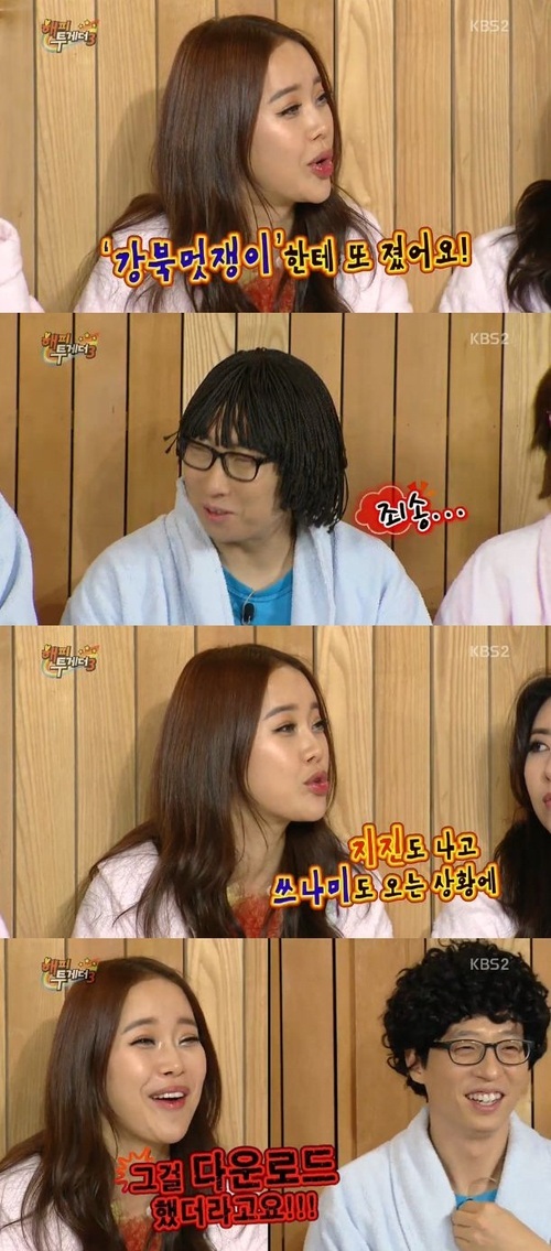 하지만 "얼마 전 남자친구가 곡 '강북 멋쟁이'를 다운 받은 것을 보고 약간 충격 받았다"고 덧붙여 폭소케 했다.