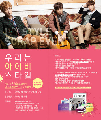 이번 이벤트는 아이비클럽 공식 홈페이지(style)와 블로그(ivy style)에 게제된 엑소케이와 김유정의 교복스타일 중 마음에 드는 사진을 골라 본인의 블로그 또는 SNS에 스크랩하고 그 이유를 댓글로 작성하면 된다.