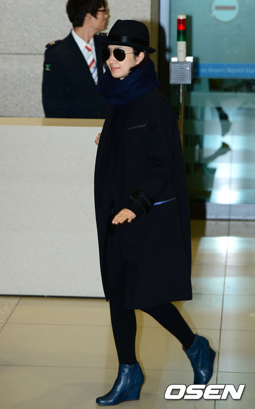 대만 배우 계륜미가 입국장을 나가고 있다.