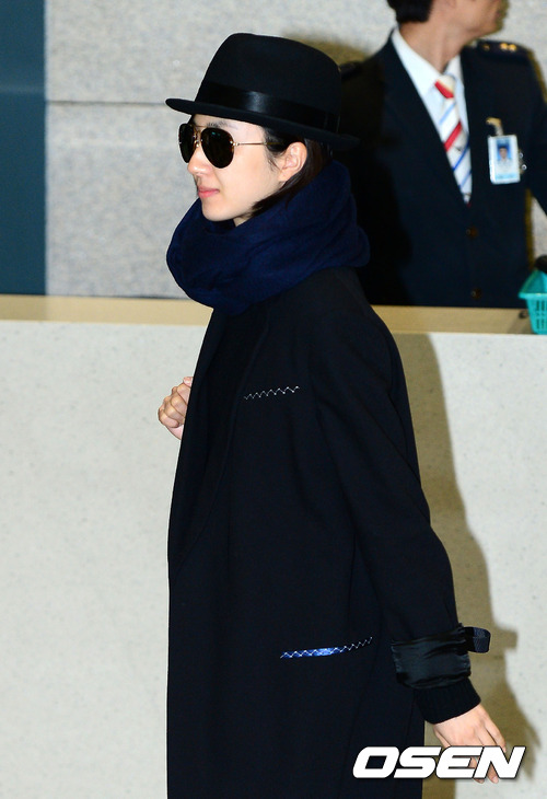 대만 배우 계륜미가 입국장을 나가고 있다.