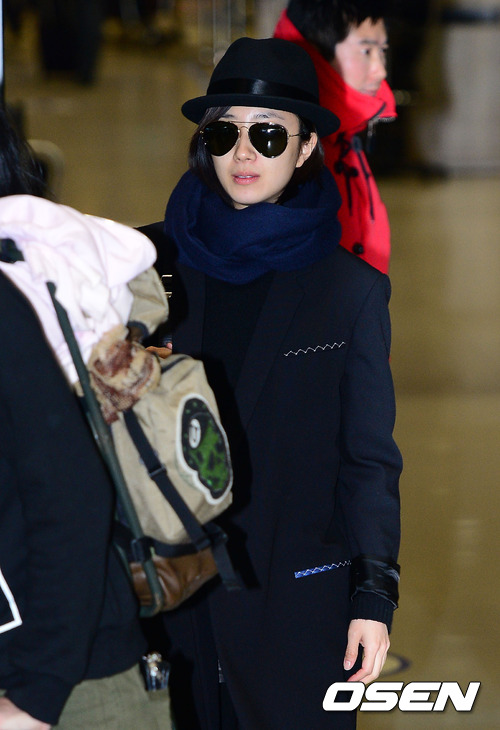 대만 배우 계륜미가 입국장을 나가고 있다.