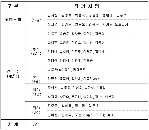 한편 외국인 선수 스캇 리치몬드는 26일 사이판으로 합류하고 쉐인 유먼은 내달 6일 가고시마로 들어올 예정이다.