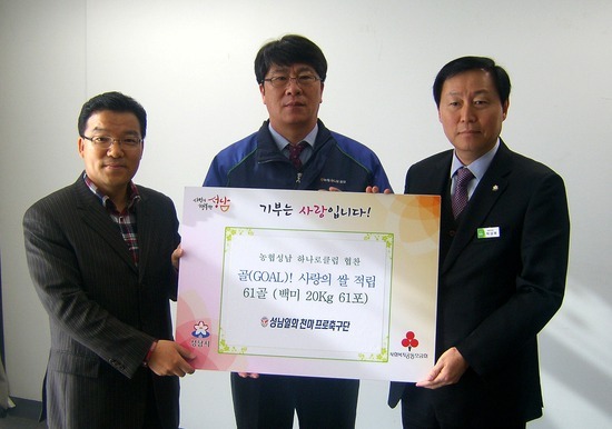 지난 2012시즌을 앞두고 성남과 농협중앙회 성남유통센터간 업무협약의 일환으로 시작된 이번 프로그램은 성남이 1골을 성공시킬 때마다 쌀 1포대를 적립, 지역 사회에 기부하는 나눔사회공헌 활동으로 펼쳐졌다.