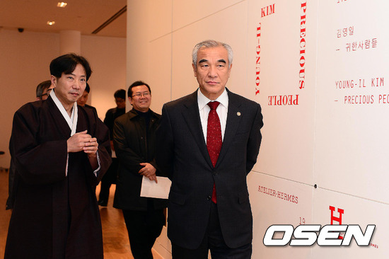 최광식 문화관광부 장관이 18일 오후 서울 강남구 신사동 메종 에르메스 도산파크 갤러리 아뜰리에 에르메스에서 사진작가 겸 전통 음악 프로듀서 김영일 작가의 '귀한 사람들' 전에 참석, 전시사진을 감상하고 있다.