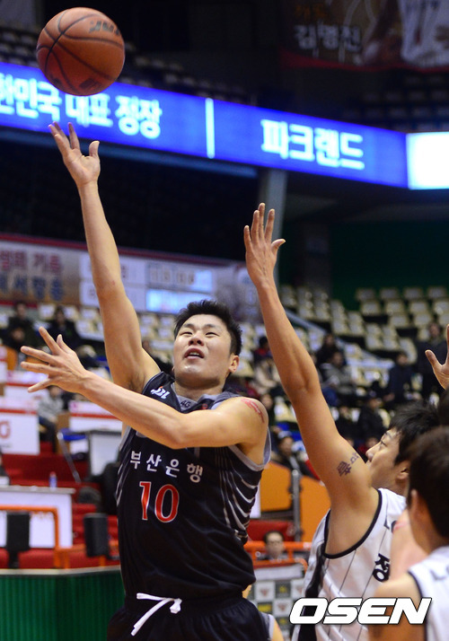18일 오후 부산 사직실내체육관서 열린 'KB 국민카드 2012-2013 프로농구' 부산 KT와 창원 LG의 경기, 1쿼터 KT 조성민이 LG 수비를 뚫고 레이업슛을 시도하고 있다.