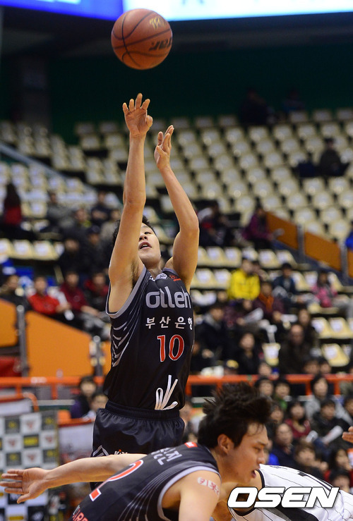 18일 오후 부산 사직실내체육관서 열린 'KB 국민카드 2012-2013 프로농구' 부산 KT와 창원 LG의 경기, 2쿼터 KT 조성민이 김명진의 스크린을 받아 3점슛을 시도하고 있다.