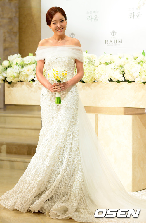 결혼식에 앞서 소유진이 기자회견을 갖고 포즈를 취하고 있다.