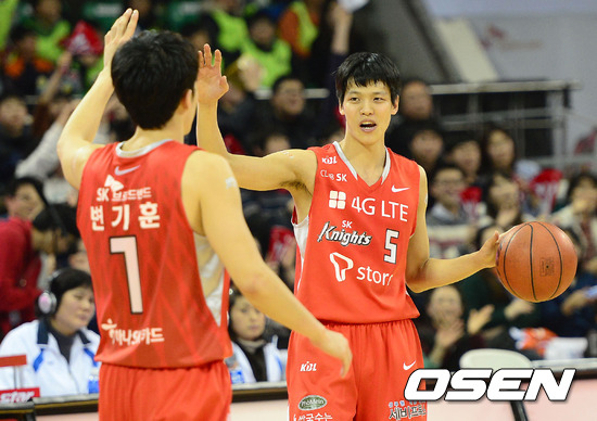 경기 종료 후 SK 김선형이 변기훈과 하이파이브를 하고 있다./sunday@osen.co.kr