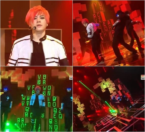 이날 문희준은 먼저 ‘파이오니어’ 무대에서 주변이 어두워지며 형광으로 빛나는 독특한 의상을 입고 강렬한 안무를 선사했다.