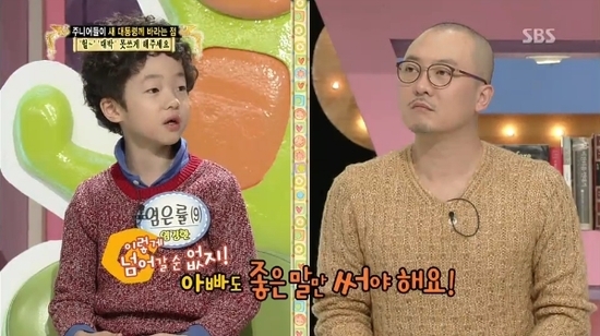 또한 은률 군은 염경환에게도 바른말을 써야한다며 "아빠는 나한테 염은률이라고 안 보르고 '야'라고 부른다. 엄마한테도 '야 서현정' 하지 않냐. 아빠도 공책에 써야한다"고 쏘아붙여 염경환을 곤란하게 했다.