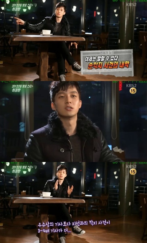 그는 이날 방송에서 "시상식 중 박지선과 손깍지를 껴서 열애설이 났었다"는 질문에 "몇 번 뿌리쳤었다"라고 해명해 눈길을 끌었다.
