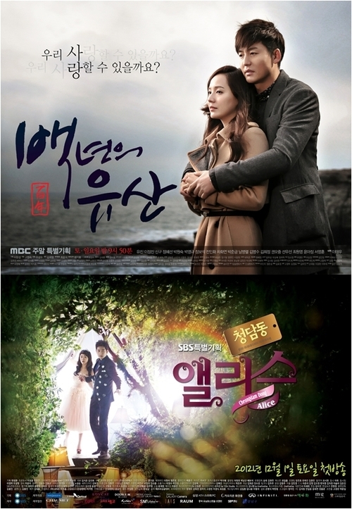 MBC 주말드라마 ‘백년의 유산’과 SBS ‘청담동 앨리스’가 시청률 무승부를 기록했다.