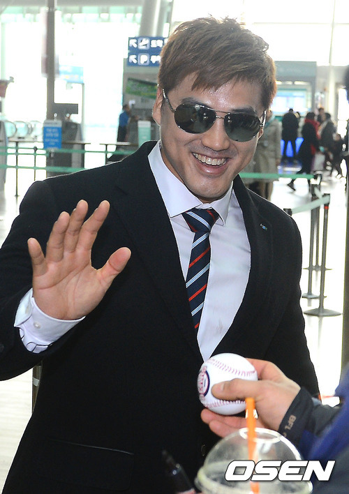두산 전지훈련 떠나는 홍성흔,'선글라스로 멋냈어요'