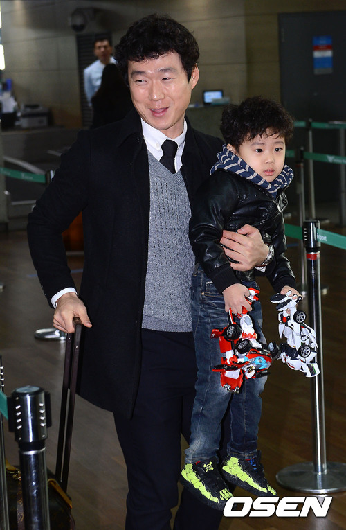 넥센 정수성이 아들 정현석 군과 함께 공항 카운터에 들어서고 있다