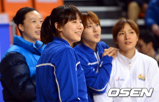 20일 오후 경산 실내체육관에서 열린 'KDB금융그룹 2012-2013 여자농구 올스타전'에서 최윤아, 이미선, 김단비, 김연주가 3점슛 콘테스트를 관전하고 있다.