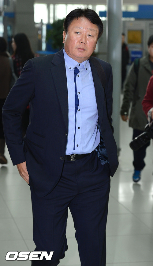 KIA 선동렬 감독이 공항 카운터로 들어서고 있다.