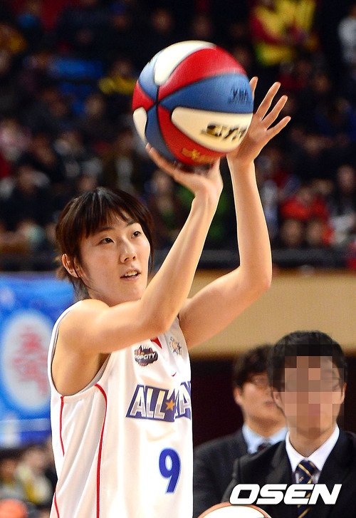 20일 오후 경산 실내체육관에서 열린 'KDB금융그룹 2012-2013 여자농구 올스타전' 경기 중간 벌어진 3점슛 콘테스트에서 중부올스타 박혜진이 3점슛을 시도하고 있다.