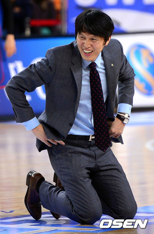 20일 오후 경산 실내체육관에서 열린 'KDB금융그룹 2012-2013 여자농구 올스타전' 경기 중간 벌어진 미션임파서블 이벤트에서 위성우 감독이 팔굽혀펴기를 한 뒤 힘들어하고 있다