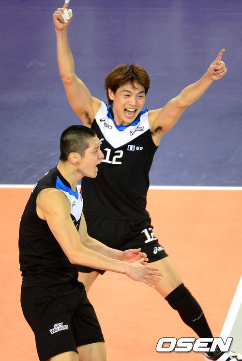 20일 오후 천안 유관순체육관에서 열린 '2012-2013 NH농협 V-리그' 남자부 현대캐피탈과 삼성화재의 경기, 2세트 득점에 성공한 현대캐피탈 문성민이 환호하고 있다.