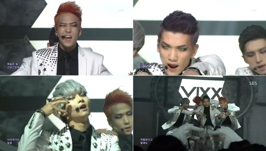 빅스는 20일 방송된 SBS '인기가요'를 통해 신곡 '다칠 준비가 돼 있어'의 컴백 무대를 가졌다. 흰색 수트로 남자다움을 뽐낸 빅스는 멤버바다 다른 컬러의 렌즈를 착용, 묘한 분위기로 시선을 사로잡았다.