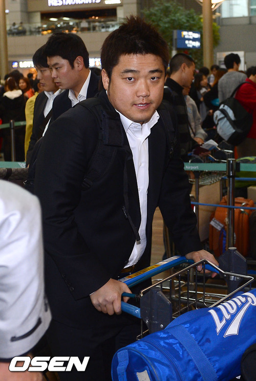 삼성 박석민이 공항 카운터에 들어서고 있다
