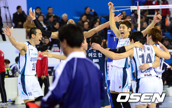 경기 종료 후 삼성화재 선수들이 승리의 기쁨을 나누고 있다./sunday@osen.co.kr