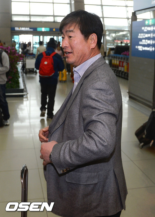 삼성 류중일 감독이 출국수속을 밟기 위해 카운터에 들어서고 있다.