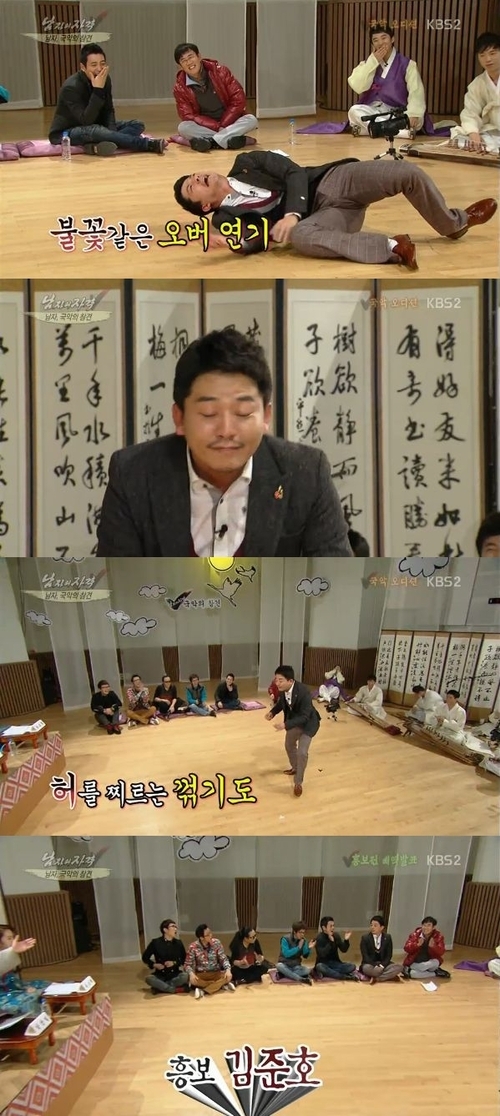 이날 김준호는 특유의 자학댄스를 춰 심사위원들로부터 전통춤인 '병신춤'과 똑같다는 극찬을 들었다.