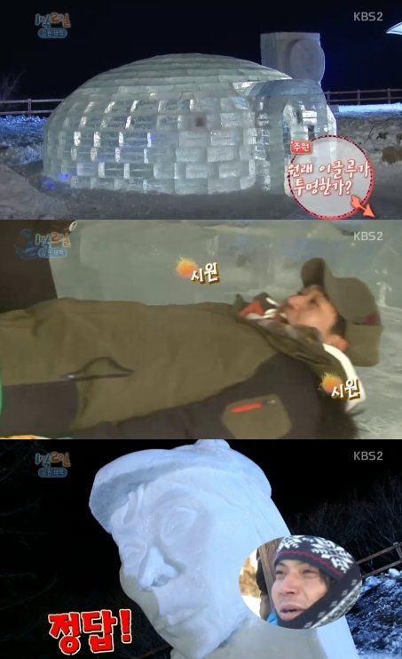 20일 방송된 KBS 2TV 주말 버라이어티 ‘해피선데이-1박2일’ 강원 태백 설국 여행에서는 눈 조각상을 보고 환호하는 멤버들의 모습이 그려졌다.