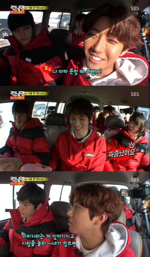 아이돌 팀과 '런닝맨' 팀은 이날 첫 경기로 빙판 썰매를 진행했다. 하지만 아이돌 팀은 광희의 부진한 실력으로 큰 위기를 맞았다. 하지만 엘과 민호의 활약으로 대 역전에 성공했다.
