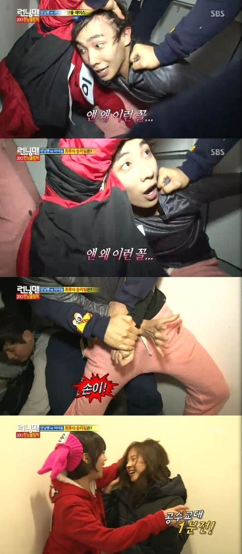 아이돌과 '런닝맨' 팀으로 나눠져 레이스를 펼친 이들은 공격과 수비로 나뉘어 서로의 이름표를 뗐다.