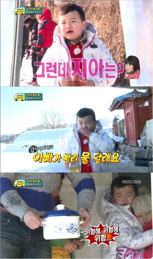 ‘아빠 어디가’에서 윤민수의 아들 윤후는 송종국의 딸 송지아와의 첫 만남부터 호감을 잔뜩 보였고 급기야 지난 20일 방송에서 질투에 사로잡힌 모습이 그려졌다.