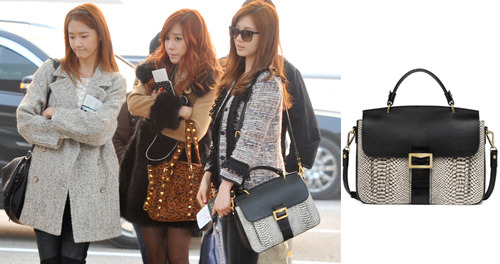 소녀시대 서현은 공항패션에서 M브랜드의 사첼백 스타일 크로스백을 포인트로 연출했다. 그가 선택한 가방은 검은색을 바탕으로 몸판에 뱀피 무늬가 있는 것이 이색적이다. 2013 뱀의 해를 맞이한 센스있는 선택으로 보이며, 여기에 트위드 재킷을 매치하며 좀 더 클래식하고 단아한 분위기의 공항패션을 완성했다.