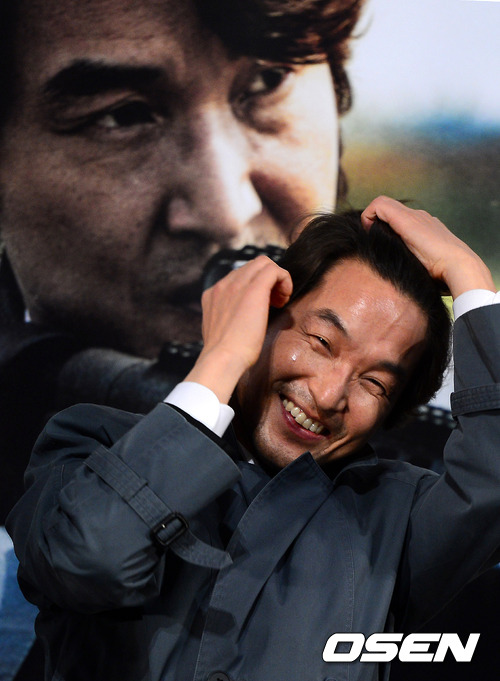 한석규가 하정우, 전지현, 류승범이 본인의 말투를 흉내내자 쑥스러운 미소를 짓고 있다.