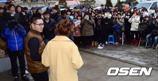22일 오후 의정부 306보충대를 통해 입대하는 이석훈이 보충대 인근에서 취재진들과 인터뷰를 하고 있다.
