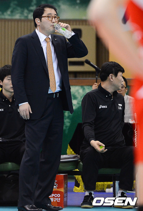 5세트 LIG 이경석 감독이 물을 마시고 있다. / soul1014@osen.co.kr