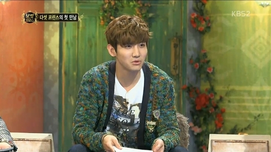 최강창민은 22일 방송된 KBS 2TV '달빛프린스'에서 첫키스를 언제 했냐는 질문을 받고 "조금 늦었는데 데뷔하고 나서였다"고 말했다.