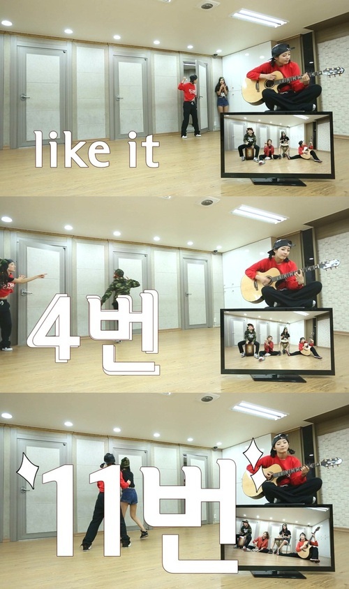 멤버들은 편하게 연습실 마룻바닥에 앉아 기타, 카혼, 젬베, 카바사를 연주하며 패러디송을 열창했다. 파워풀한 칼군무를 펼치던 모습과 정반대로, 자유분방하게 흐트러진 모습이 매력적이다.