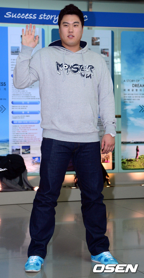 출국에 앞서 류현진이 포토타임을 갖고 있다.
