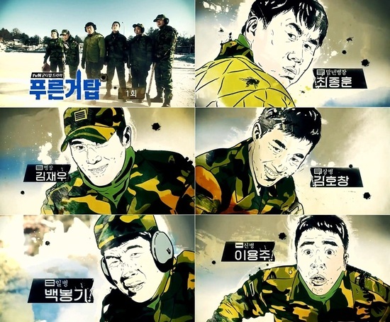 한편 '푸른거탑'은 추억의 군대 에피소드를 세밀한 심리묘사로 다뤄낸 시트콤. 대한민국 군필 남성들이 공통적으로 가지고 있는 애증의 추억을 자극하며 열광적인 남성 시청자를 확보하는데 성공한 '푸른 거탑'은 tvN 예능프로그램 '롤러코스터2' 속 코너에서 독립 프로그램으로 편성됐다.
