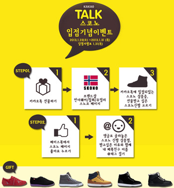 노르웨이 태생의 슈즈 브랜드 스코노(SKONO)에서 모바일 메신저 카카오톡의 브랜드샵 입점 기념 이벤트를 실시한다.