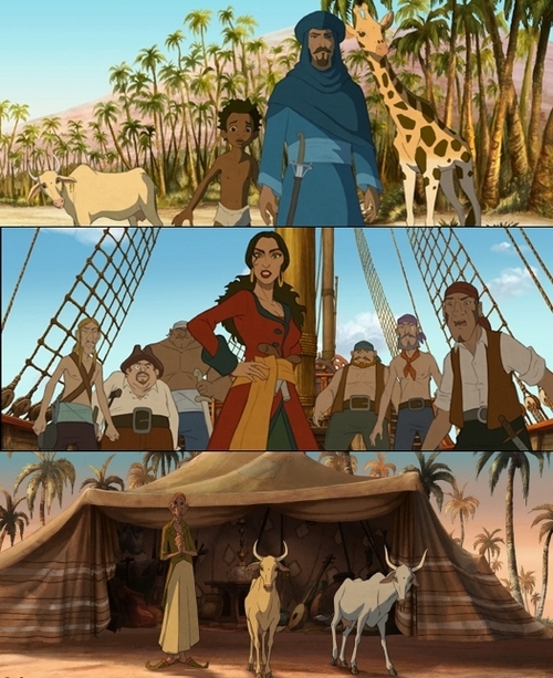 주인공 아기기린 자라파와 마키를 노예상으로부터 지켜내는 키다리 아저씨 핫산, 여자 해적왕 부글리나, 사막의 장사꾼 마흐메드와 쌍둥이 송아지 문과 순이 그들.