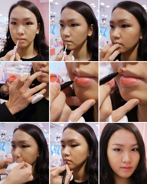 "립 메이크업 전에는 컨실러를 이용해 입술 뿐 아니라 주변의 컬러들도 정리해주는 것이 좋습니다. 또한 각질이나 잔주름 커버에 도움이 되는 입술 전용 프라이머를 사용할 것을 권장합니다."