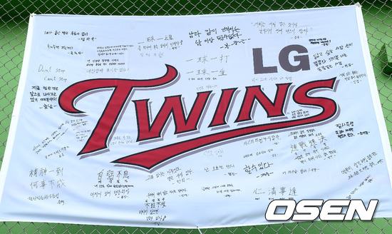 25일 오전(현지시간) 사이판 수수페 구장에 LG 선수들의 각오가 적힌 깃발이 걸려있다.