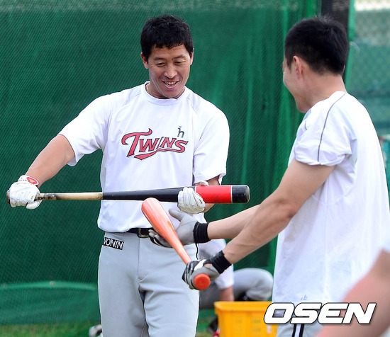 25일 오전(현지시간) 사이판 수수페 구장에서 LG 이병규와 정성훈이 타격훈련을 하고 있다.